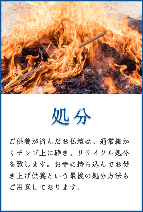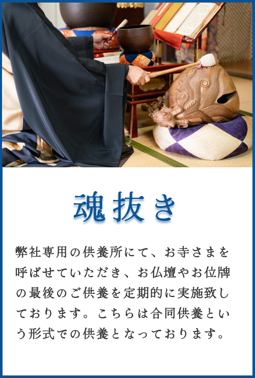 仏壇は魂入れの供養に始まって、魂抜きの供養で最後を終えます。